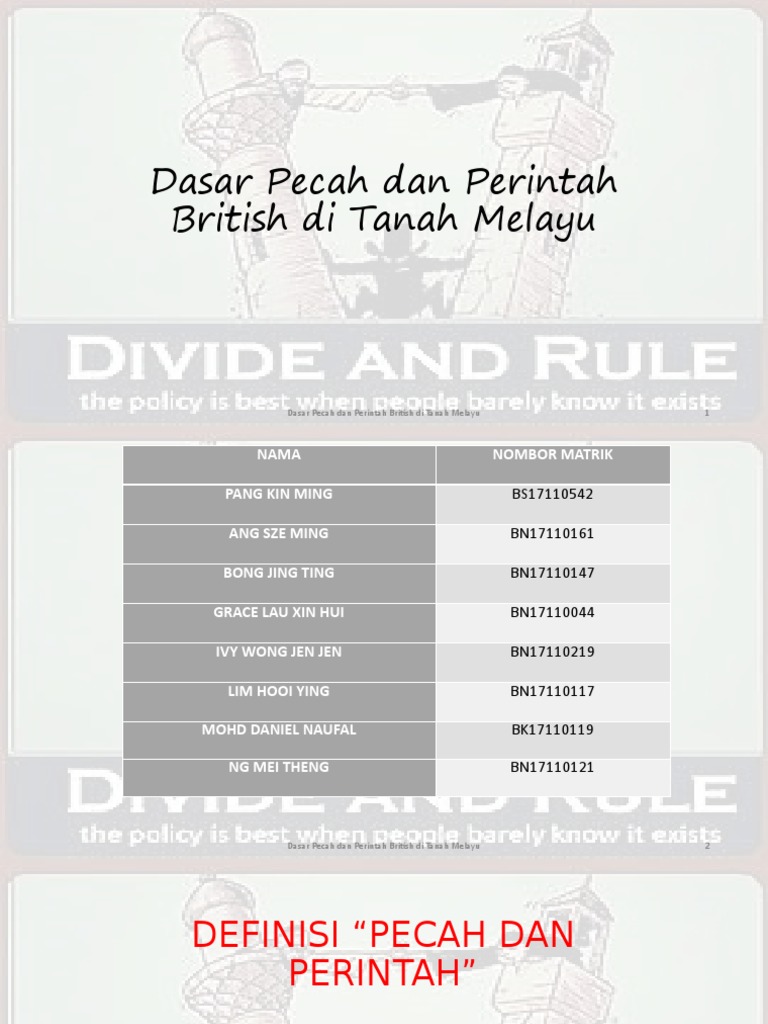 2 Dasar Pecah Dan Perintah British Di Tanah Melayu Pdf